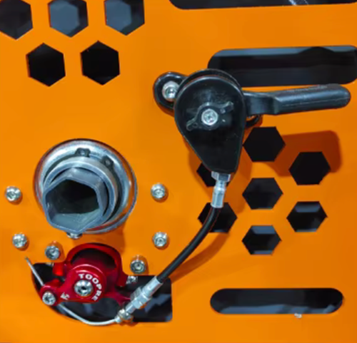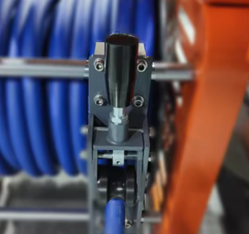 The frame is constructed from industrial powder-coated steel with independent locking levers to secure the reels during transport. It comes equipped with 3/8″ quick-connect fittings and a 1.5m inlet lead hose, making it compatible with most high-pressure pump systems and jetting machines.